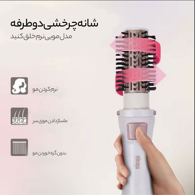 سشوار چرخشی از به روز ترین و کاربردی ترین ابزارهای حالت دهنده ی مو است که با دمیدن هوای گرم از داخل منافذ برس به تارهای مو آن ها را خشک و حالت پذیر می کند. سشوارهای برسدار گزینه بسیار خوبی برای حالتدادن و خشککردن مو خصوصا در مهمانی ها و مسافرت هستند. به جای اینکه یک سشوار و چندین برس را با خود ببرید، کافیست یک سشوار برسدار جمعوجور با سری های متفاوت همراه داشته باشید. سشوار برس دار چرخشی دی اس پی مدل 50064 یک دستگاه حرفهای و کارآمد برای حجم دادن و خشک کردن موهای شما است. این سشوار با توان مصرفی 1000-850 وات و سرعت چرخش 27000 دور بر دقیقه، قادر است به سرعت و با کیفیت بالا موهای شما را حالت دهد. این سشوار دارای دو سری برس دار با اندازههای مختلف است که میتوانید بر اساس نوع و حجم موهای خود از آن ها استفاده کنید. همچنین، این سشوار دارای قابلیت تنظیم دما و خروجی باد سرد است که به شما امکان میدهد دمای مناسب برای موهای خود را انتخاب کنید و با باد سرد حالت موهای خود را تثبیت کنید. برای راحتی بیشتر، این سشوار دارای دکمه برای تنظیم جهت چرخش است که به شما اجازه میدهد برس را به سمت دلخواه خود بچرخانید. علاوه بر این، این سشوار از موهای شما در برابر گرمای بیش از حد محافظت میکند و با فناوری تولید یون، موهای شما را نرم و درخشان میکند. این سشوار همچنین دارای حلقه آویز برای نگهداری آسان و شاسی برای جدا کردن سری و تعویض آن است. طول سیم این سشوار 1.8 متر است که به شما فضای کافی برای حرکت میدهد. با خرید سشوار برس دار چرخشی دی اس پی مدل 50064، شما میتوانید از تجربه حجم دادن و خشک کردن موهای خود با راحتی و اطمینان برخوردار شوید.